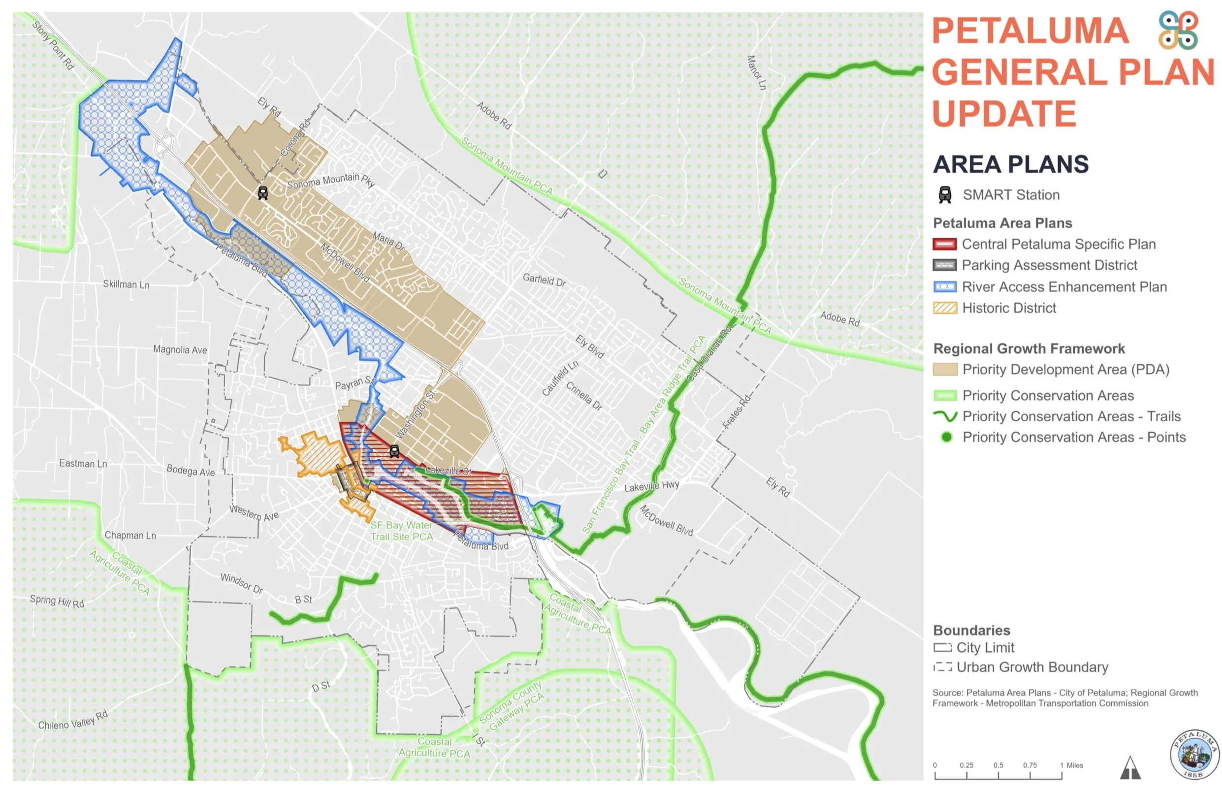 The City of Petaluma is currently operating under the City of Petaluma: General Plan 2025, which was written in 2006-2007, adopted in 2008, and last updated in 2012. As the 2025 planning horizon approaches, the City has kicked off the process of updating its General Plan. The General Plan serves as the guiding vision document and provides policies and implementation programs to achieve the City’s goals.